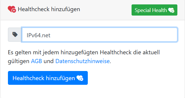 Um einen Healthcheck für eine Website zu konfigurieren, navigiere zuerst auf die Healthchecks & Monitoring Seite von IPv64.